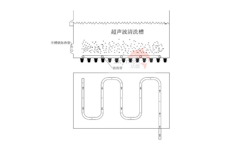 壓縮空氣通過鼓泡管小孔噴出,產(chǎn)生高壓氣泡,使槽子里的液體,呈翻滾狀態(tài),從而使質量較輕的工件清洗更全面,也使沉積在工件表面的污漬能迅速剝離。