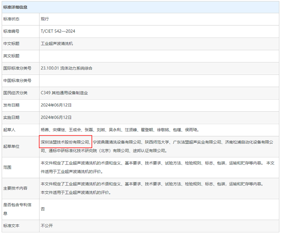 潔盟集團(tuán)參與起草《工業(yè)超聲波清洗機(jī)》團(tuán)體標(biāo)準(zhǔn)
