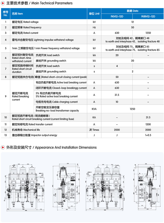 FKN12-12D/T630-20 FKRN12-12D/T125-31.5戶內(nèi)高壓壓氣式負(fù)荷開關(guān)
