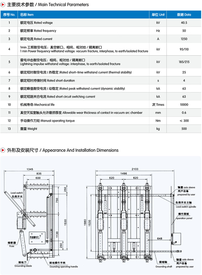 FZW32-40.5戶外高壓真空負(fù)荷隔離開關(guān)