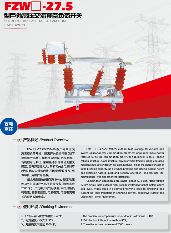 FZW?-27.5型戶外高壓交流真空負荷開關